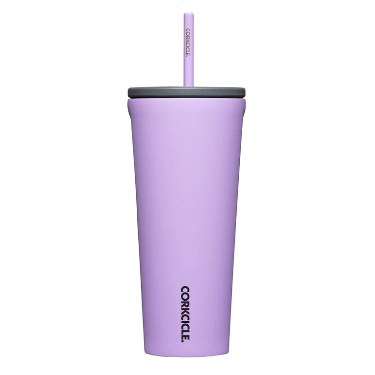 - Corkcicle lilac stainless steel insulated tumbler features a solid lid with ceramic straw.