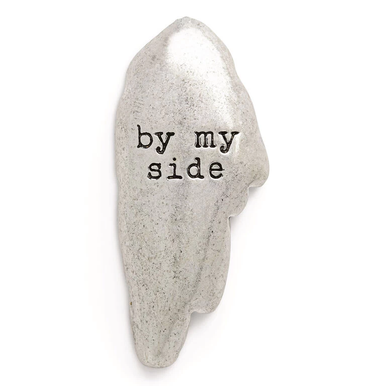 Show them they’re loved with a metal token to carry with them wherever they go. This handcrafted, artisan token features a single angel wing on one side with “by my side” engraved on back. The precious silver token is a wonderful way to encourage a friend or family member.