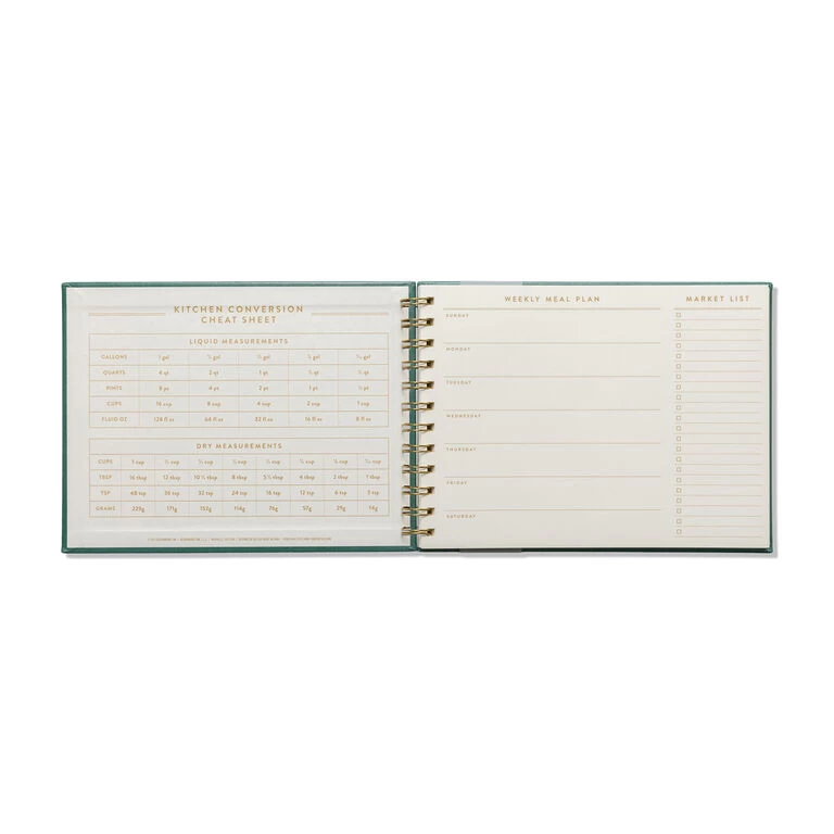 Plot your main courses with this unique and helpful hardback planner featuring weekly spreads for planning out your meals. Each sheet includes a perforated checklist to write down your grocery list and bring along to the store. Inside the spiral-bound planner, a kitchen conversion cheat sheet in front makes a great quick reference for recipes. And a pocket in back holds coupons and favorite recipes to keep you organized. This meal planner book makes a great gift idea for graduations, weddings, housewarmings and more.
