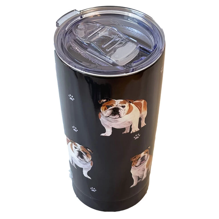 This Serengeti tumbler from E&S Pets comes with a BPA-free, spill-proof lid with an open-and-close slider. Stainless steel black tumbler features brown and white bulldogs in fun poses along with tiny white paw prints. Using special 3D German printing technology with a high gloss finish, this fun dog tumbler is the perfect gift for bulldog owners and dog lovers alike. It makes a great companion when walking your favorite fur baby, running errands and more.