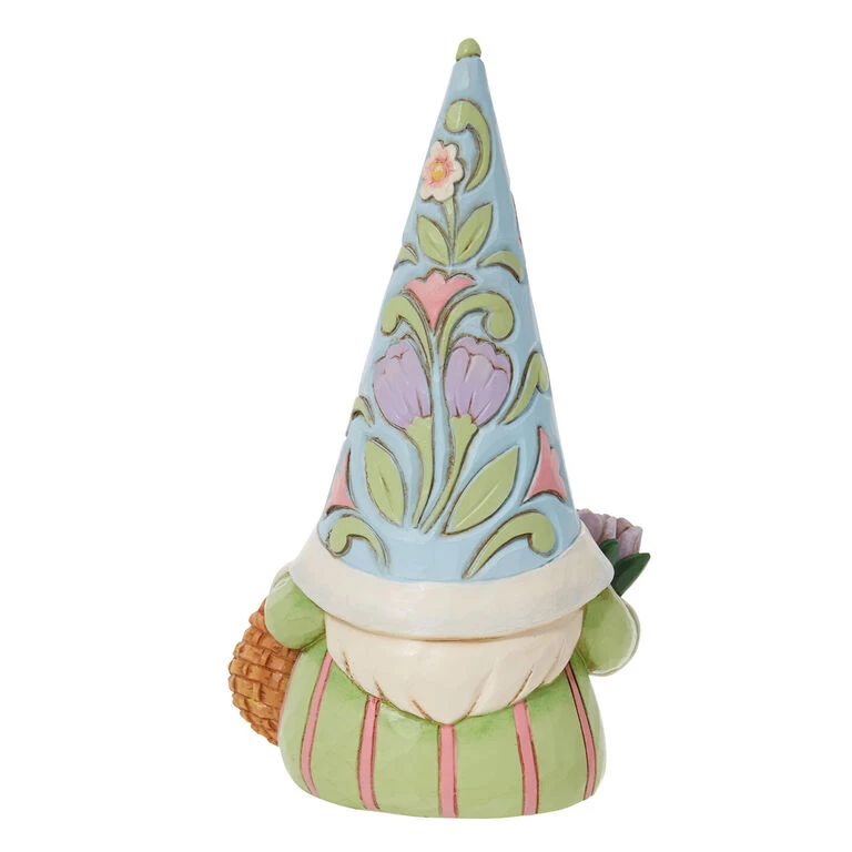Freshen up your home with springtime pastels and floral-inspired decor. This handcrafted gnome figurine wears a pastel-colored hat of flowers and holds a basket of gathered painted eggs. Featuring Jim Shore’s handpainted designs inspired by folk-art forms of quilting, rosemaling and tole painting, this adorable piece is like a breath of fresh air for any room in your home.