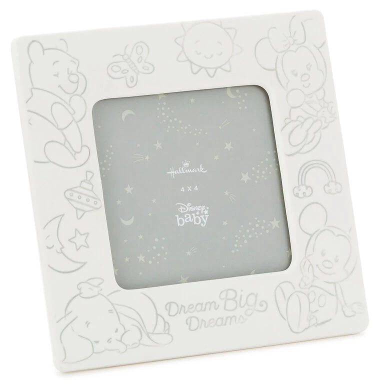 - Disney Baby themed ceramic picture frame features illustrations of sweet designs and beloved Disney characters with an inspirational message.