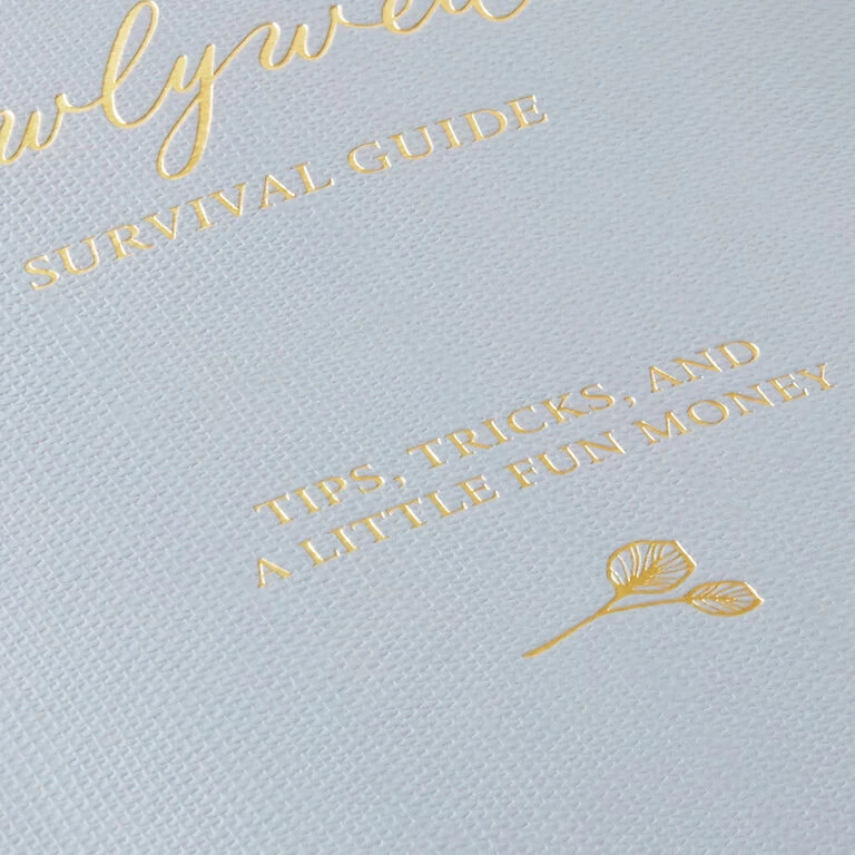 • “Newlyweds Survival Guide” gift book features tips and tricks for new couples with slots to insert related gift cards.