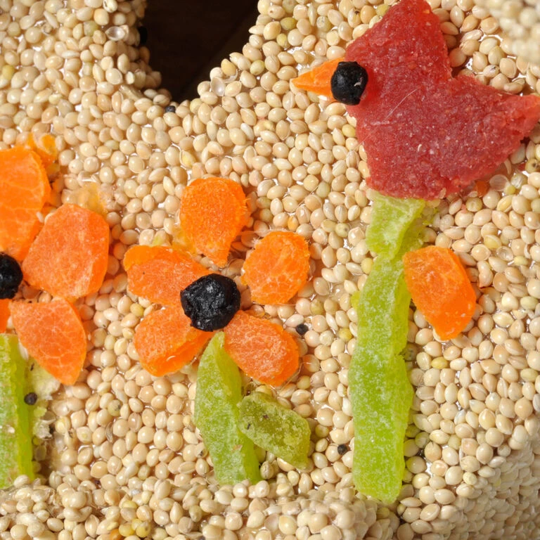 - Mr. Bird Spring Fruit Casita wren house is decorated with premium bird seed and fruit tidbits.